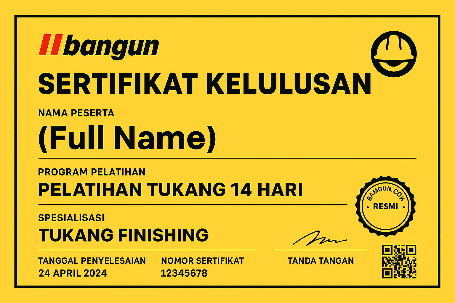 Gabung program pelatihan dan dapatkan sertifikasi resmi untuk tukang bangunan. Gaji naik, kerja lebih dipercaya, dan peluang proyek bertambah. Didukung oleh LPK Bangun Indonesia.